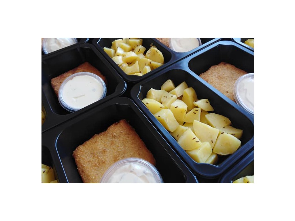 Složení: Rybí filé, brambory, máslo, mouka, vejce, strouhanka, tatarka, koření