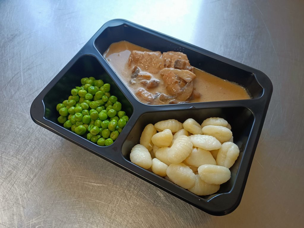Složení: vepřové maso, smetana, brambory, vejce, mouka, hrášek, koření