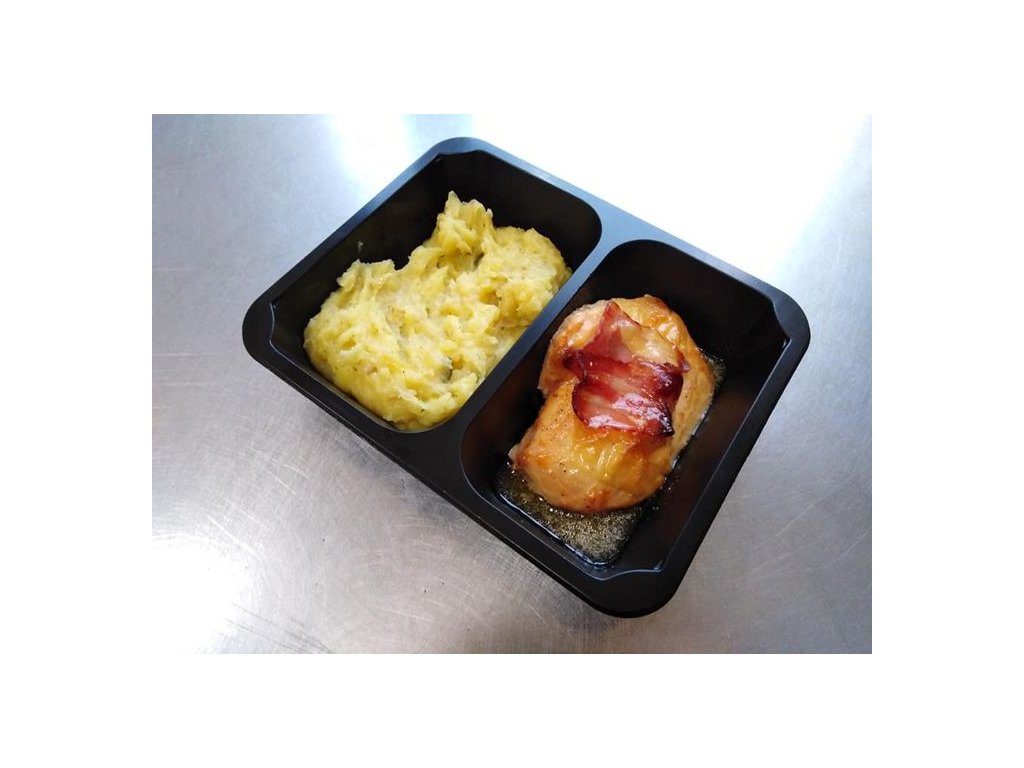 Zapečená kuřecí prsa se slaninou a sýrem, šťouchané brambory pondělí