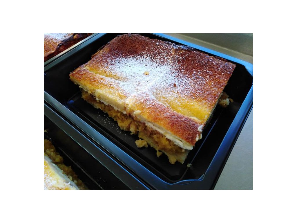 Složení: Pečivo, jablka, tvaroh, mléko, cukr, rozinky, vejce, skořice